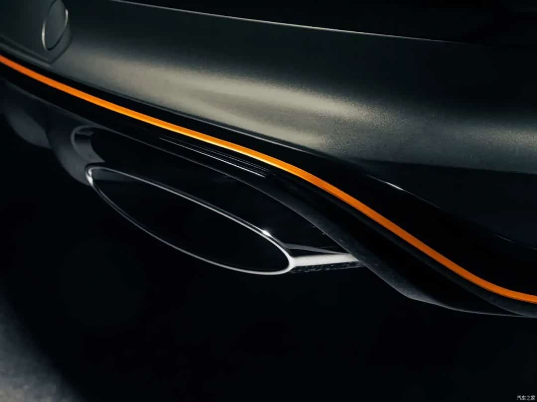 车尾部配备了一个大尺寸的车顶扰流板,椭圆形尾灯内部相互交织的灯组造型让其点亮后极具辨识度与华丽感,后备厢的层次感分明,后包围还有尾部扩散器以及双边共两出的椭圆形排气设计。