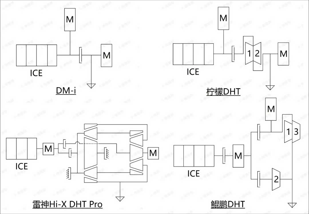 所以中国品牌车企在做混动的时候,大多数都选择了和本田i-MMD类似的DHT双电机系统,包括比亚迪DM-i、长城柠檬混动DHT,以及这次的吉利雷神智擎Hi·X。
