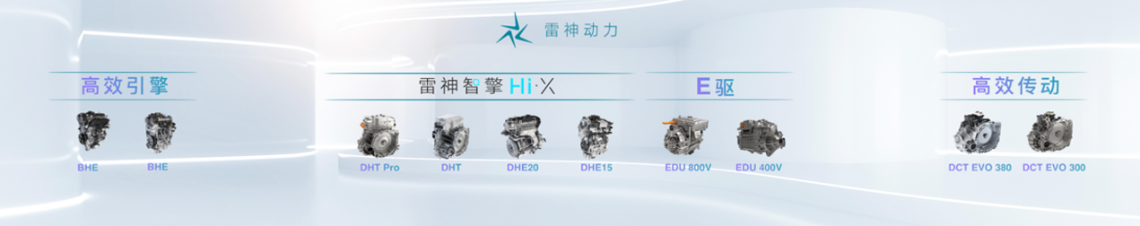 首先简单介绍一下,雷神动力是一个比较宽泛的统称,它的产品矩阵包括雷神智擎Hi·X、高效传动、高效引擎、E驱。