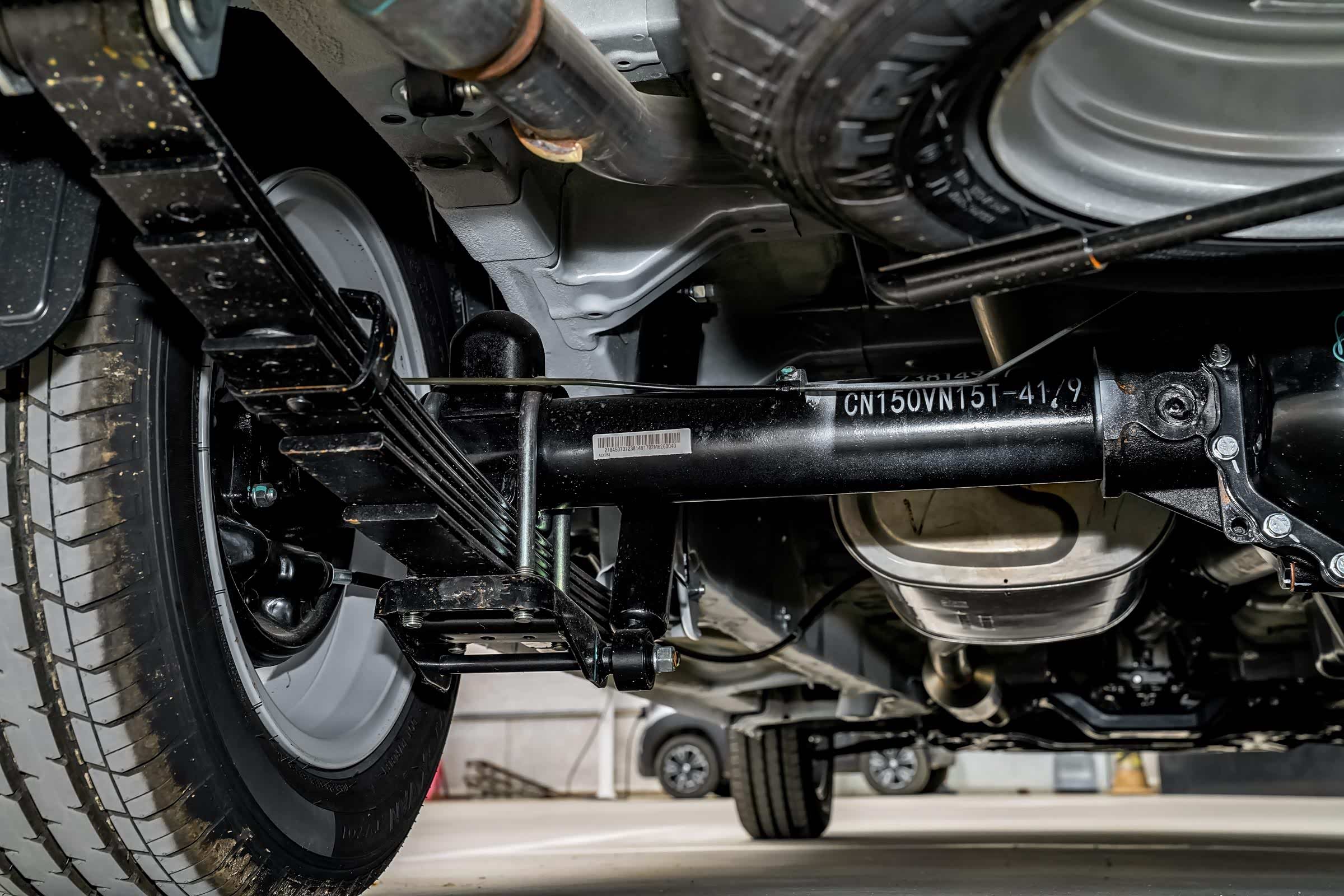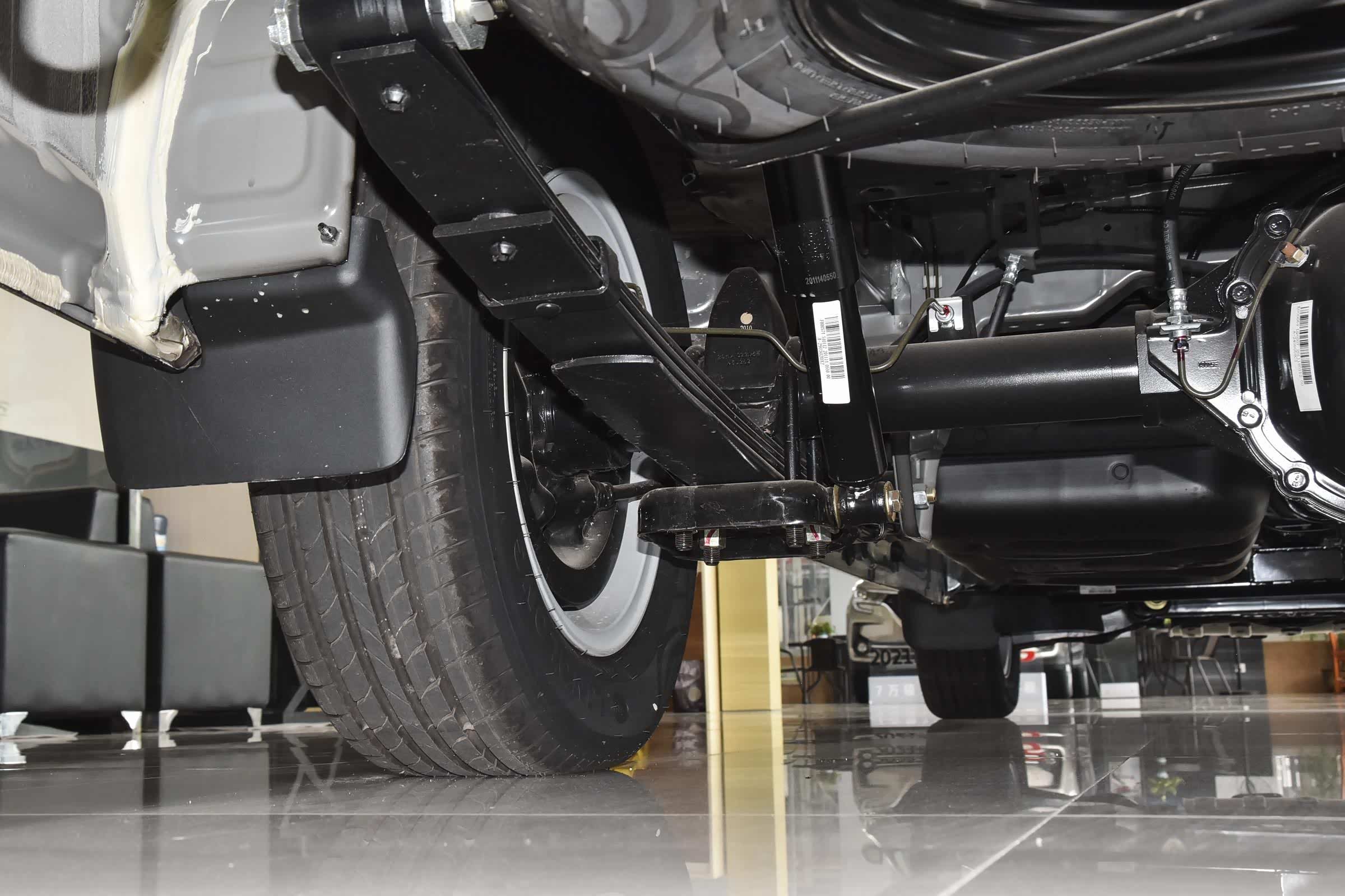 底盘采用了前双横臂式独立悬架,后钢板弹簧非独立悬架。空车行驶,走坑洼路面,车身前面舒适性还不错,车身后面有颠簸感。满载之后,后悬架支撑性够用,颠簸感不明显。