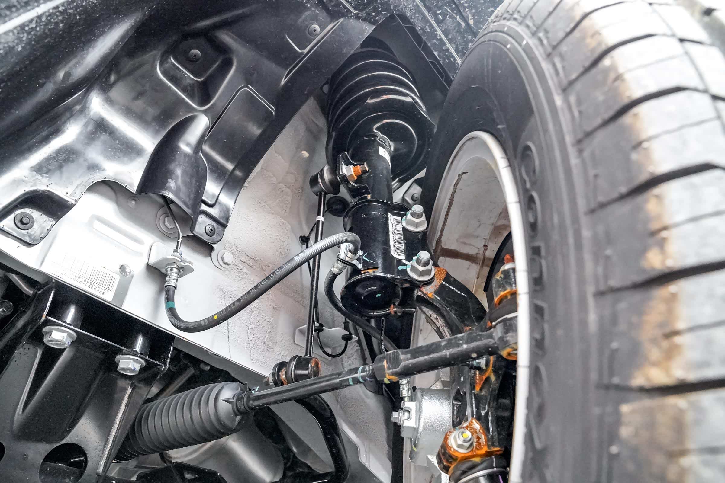 底盘采用了前麦弗逊式独立悬架,后钢板弹簧非独立悬架,悬架调校以载重为主,跑空车过减速带有颠簸感,满载七人的状态下,底盘舒适性刚好合适,悬架不软也不硬。