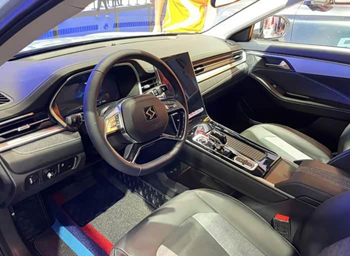 思皓爱跑内饰部分视觉效果简洁明了,采用了“T”字型的中控布局,主要由全液晶仪表盘、纵置排列的中控屏以及电子换挡杆组成,并将空调出风口的造型很好的融入到中控台上。最为显眼的大尺寸中控屏幕由内嵌式更换为独立式设计,使得其中控布局看起来更加精致。