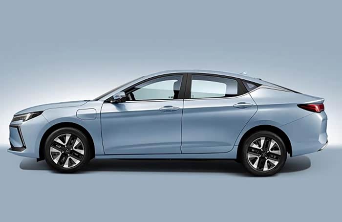从车身侧面看,新车采用了悬浮式的车顶设计加上非常漂亮的溜背线条,并搭配上“V”形多辐双色轮圈,让它彰显出“静如处子,动如脱兔”的灵动气息。新车的尺寸参数为4770/1820/1510mm,在同级车型中也算是尺寸偏大的紧凑型轿车,车内空间应该保留得十分充分。