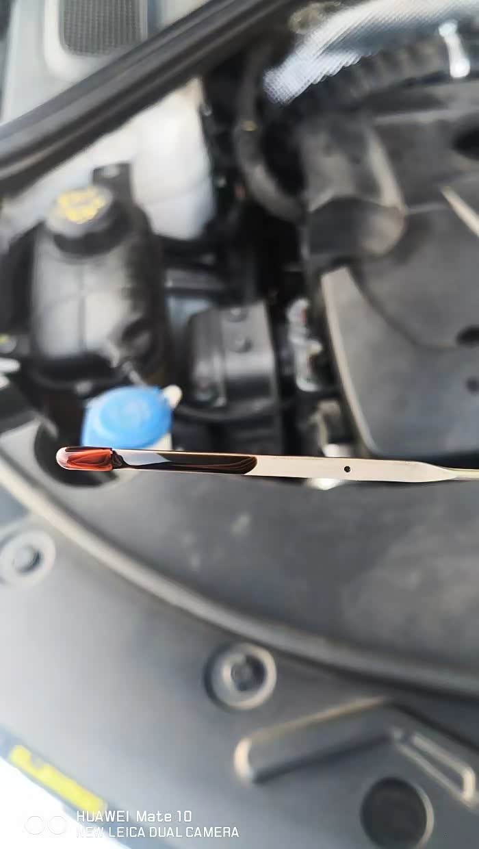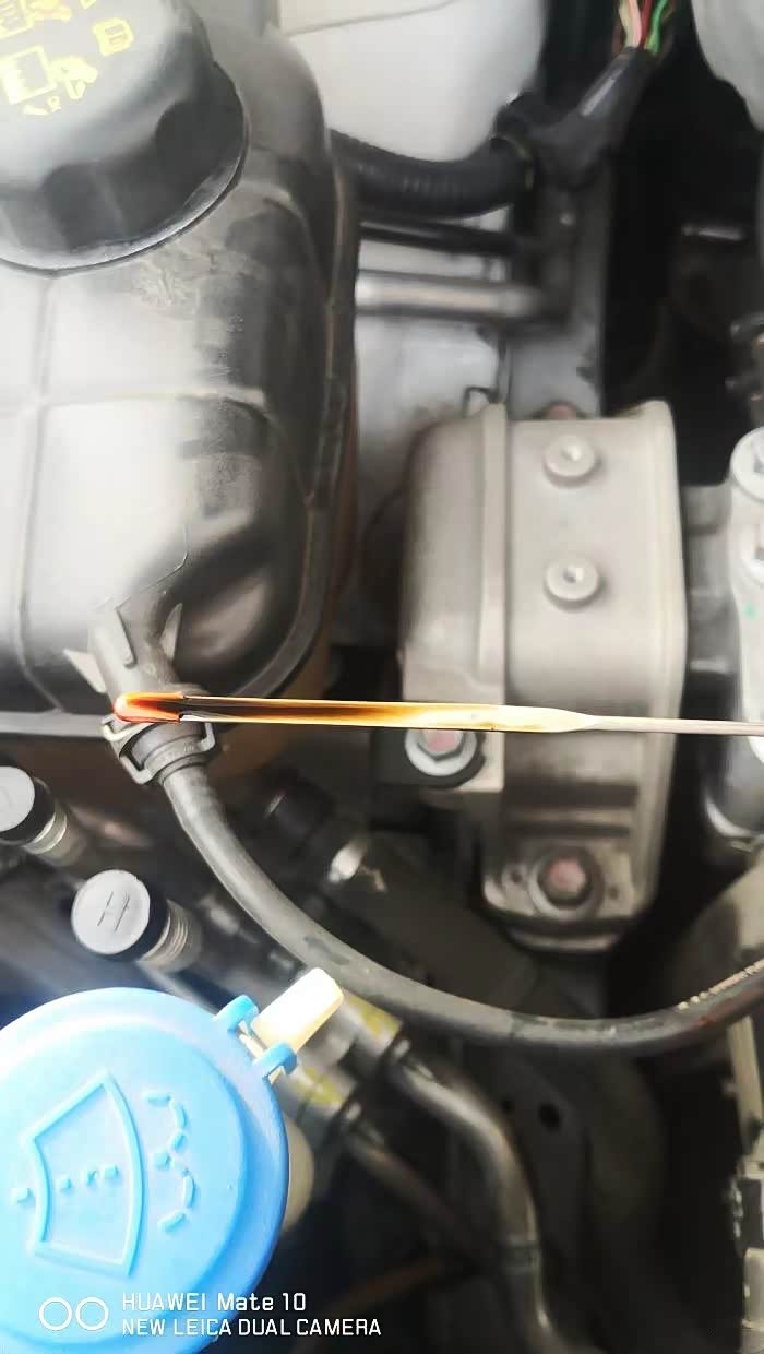 可以明显看到机油的变化,不像之前非常的黑了。补充机油里程57940公里,上图