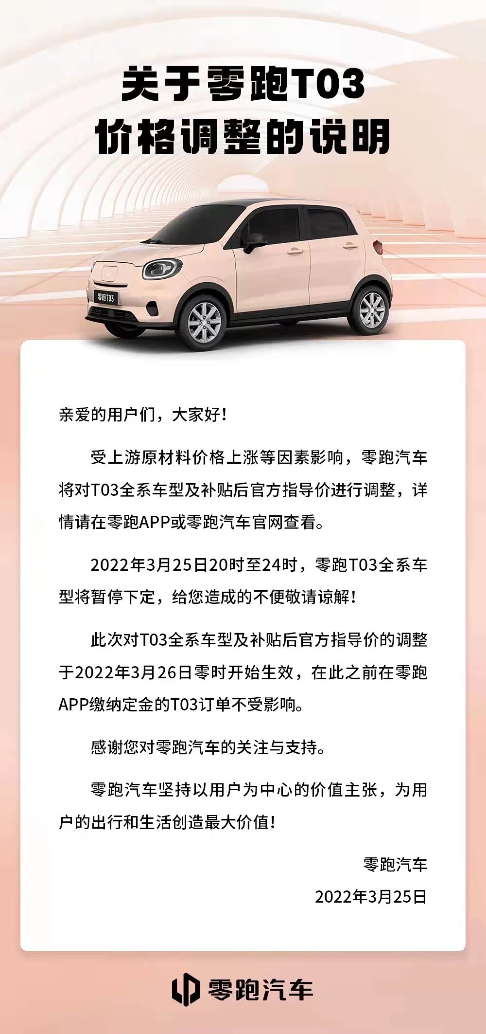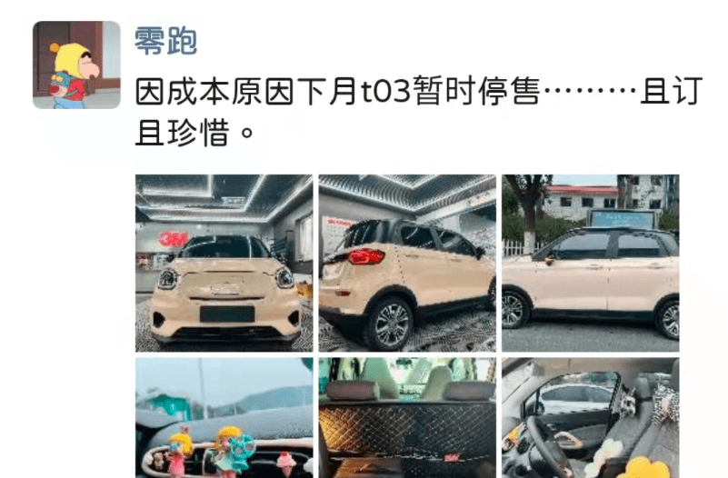 4月1日,有车友在第一电动零跑汽车车友圈发了一张朋友圈截图,截图显示:因成本原因4月零跑T03暂时停售……且订且珍惜。这个消息一下在第一电动编辑小组炸开了锅,有老师表示:零跑T03可是零跑的走量车型啊,它停产怎么可能啊?
