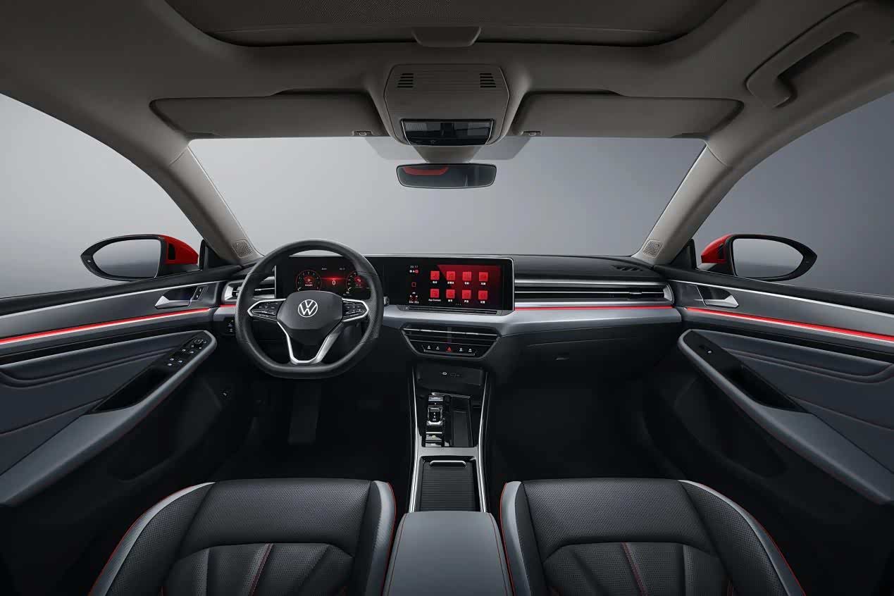 内饰方面,新车采用了大众最新家族化设计风格,由10英寸液晶屏+12英寸中控屏组成的一体式贯穿屏非常醒目,并搭载大众最新的MIB系统,功能上达到了同级别的主流水平。此外,三辐式多功能方向盘、W-HUD抬头显示、灯光控制等区域的设计与大众ID.家族较为相似,并且换装与全新高尔夫造型相同的电子换挡系统,科技感和时尚感营造都十分到位。