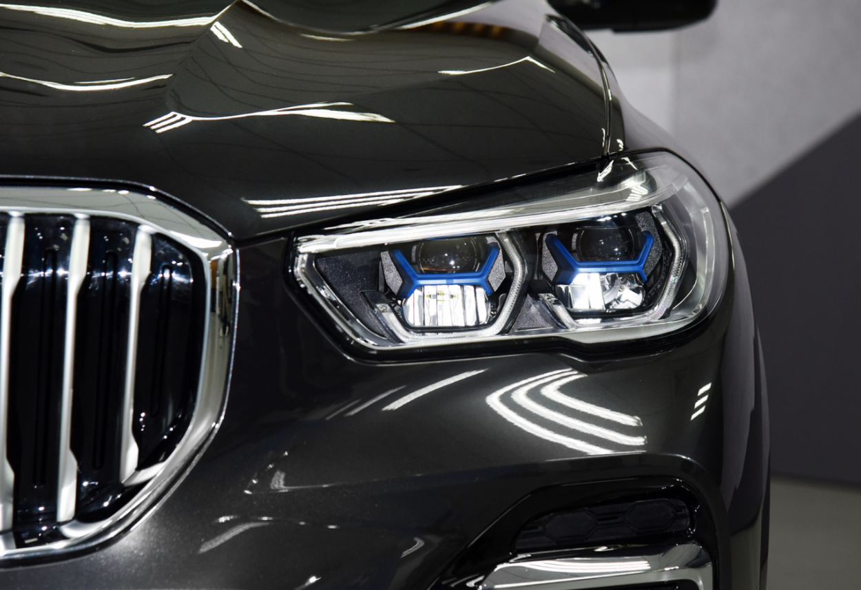 激光大灯内部还采用了蓝色“X”型部件,具备不错的未来感,而且照射距离达到了500米。