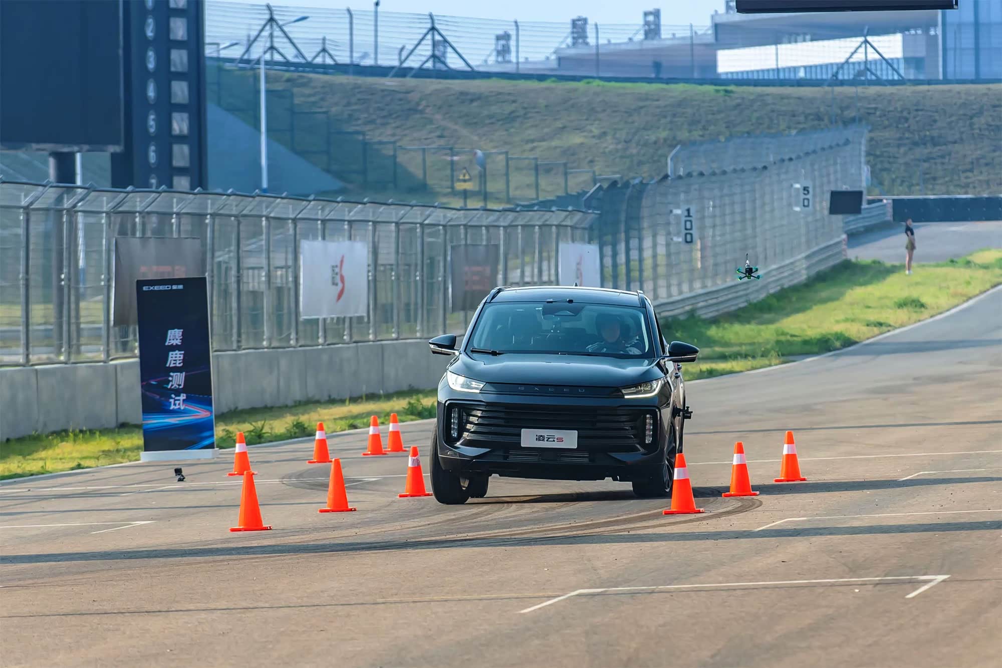 2022年4月19日,星途的性能车凌云S 400T即将上市,所以星途在株洲找了条赛道,又做了一次公开直播的麋鹿测试,这次按照ISO 3888-2测试标准摆放桩筒。