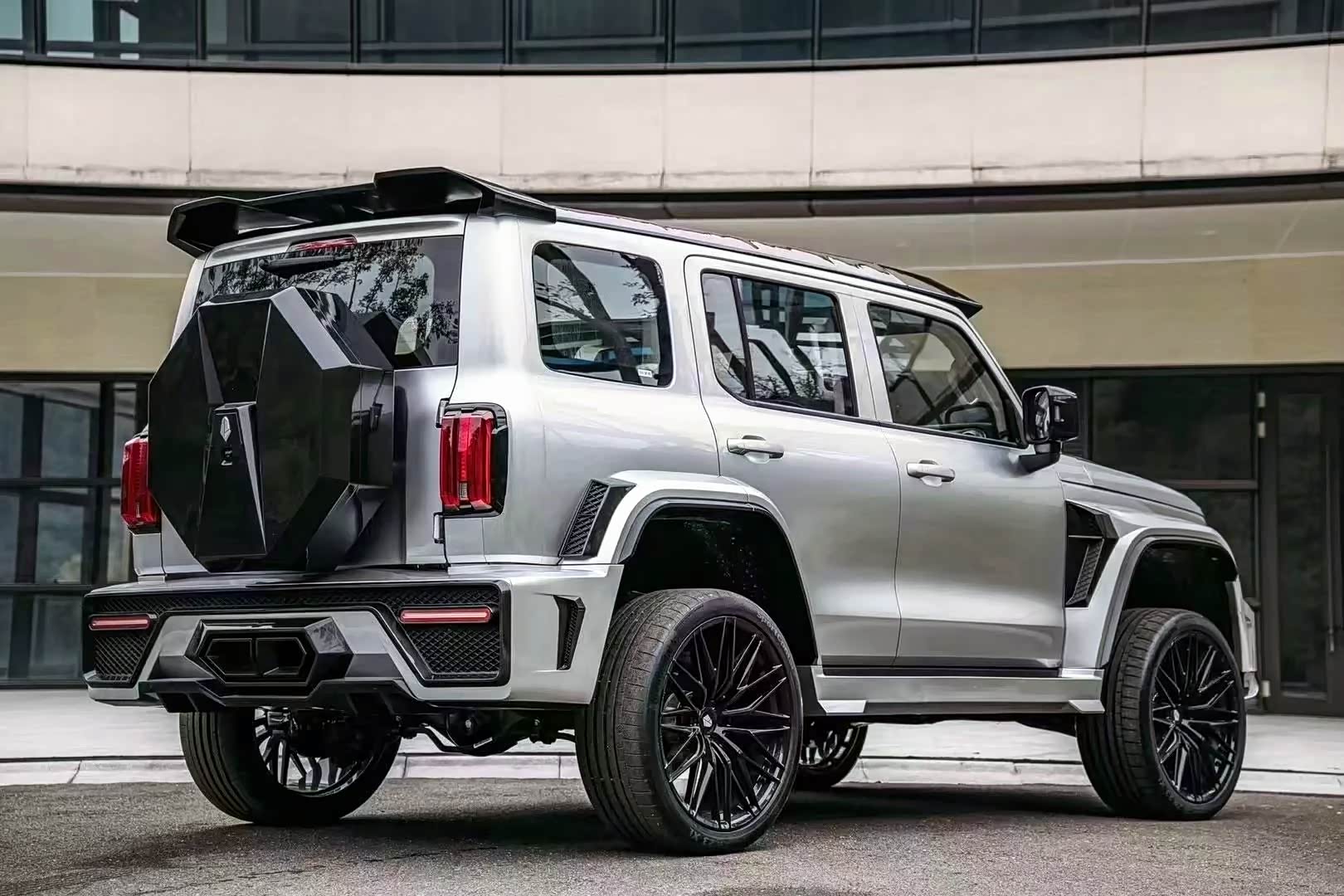 原厂状态下的坦克300离地间隙更好合适,但是火星城市车型加装了一圈包围,使离地间隙降低,为了保证通过性,不得不对车身进行升高。火星城市车型选择最稳定的1.5寸升高方案,并且配备了22英寸大轮毂,通过性比原厂的坦克300更加出色。