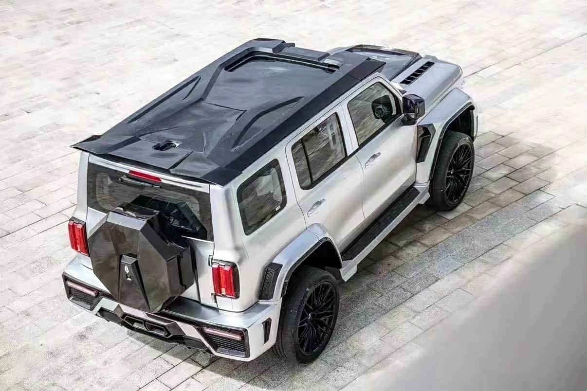 由于坦克300的车身比例很协调,而且是硬派越野车中最常见的方盒子造型,原厂状态下就能展现出独有的“霸气”,结合向外扩展的轮眉,增加了车身宽度,同时轮眉喷涂成与车身同色的车漆,为整车提升豪华感。为了增加火星城市车型的辨识度,在车顶上方增加了车顶罩以及车顶灯,并且带有一体式大尾翼,视觉冲击力很强,不过不规则的造型很难控制风噪,高速行驶的时候风噪还是比较明显的。