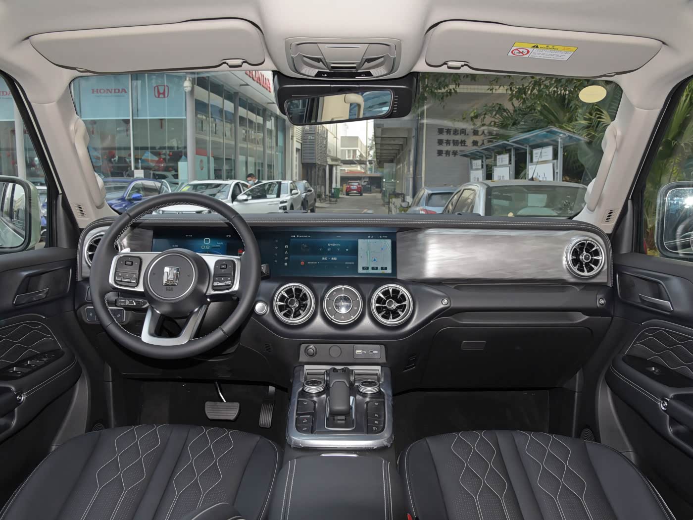 目前坦克300火星城市只是在外观方面进行了升级,内饰依旧保持原厂状态,不过坦克300的原厂内饰科技感表现已经很不错了,全液晶与中控大屏连接在一起,形成现在非常流行的大连屏设计,与奔驰G500的布局保持一致,三幅多功能方向盘的握感很不错,分布在两侧的多功能按键反馈也很清晰,在行车时使用很方便。除此之外,坐在升高后的坦克300火星城市车内,会有“一览众山小”的感觉,视野非常宽阔。