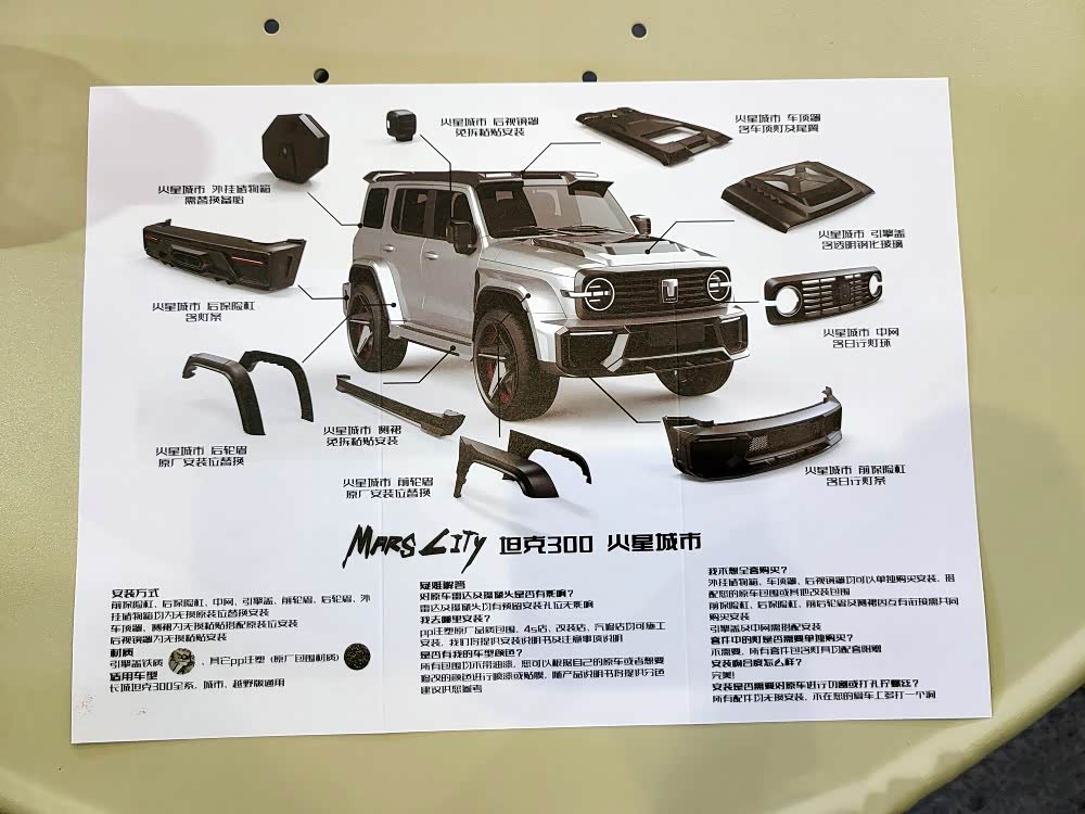 总体来说,坦克300火星城市的综合表现还是很不错的,也是同价位车型中唯一可以与奔驰G500拼颜值的车型,并且一套火星城市专用配件价格也不贵,价格大约在2万元左右,可以让原厂的坦克300提升一个档次。大家看完这款车之后有什么感想呢?欢迎说说自己的看法。