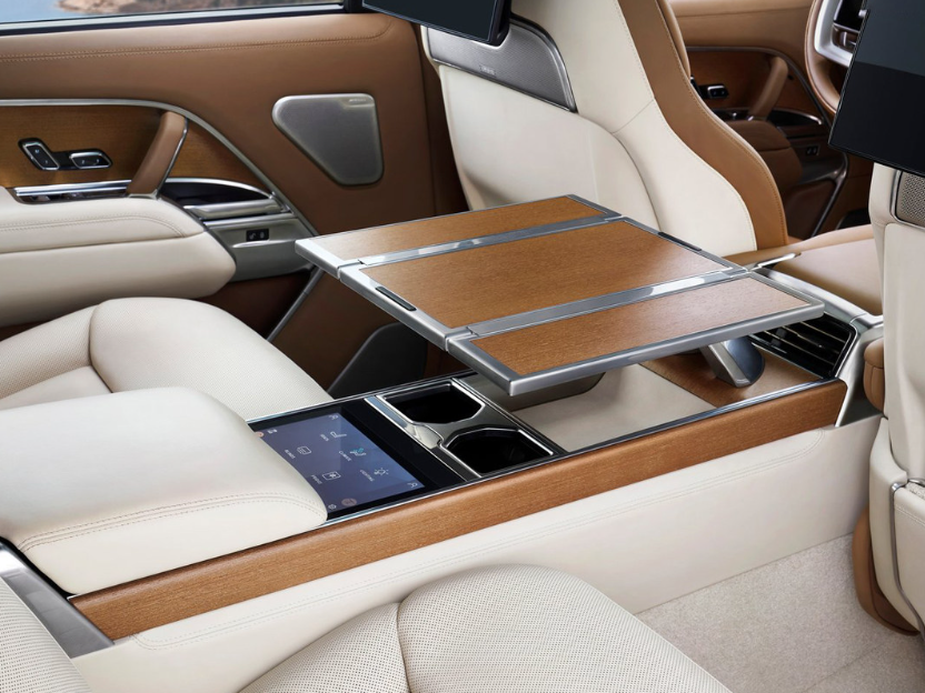 而在后排乘坐空间方面 第五代路虎揽胜表现依旧亮眼!四座版本表现最为亮眼,相比上代车型增加了75mm轴距 带来更大的腿空间表现 加上可调节的座椅靠背 葛优躺并非要在家中沙发上 揽胜也可以轻松实现。四座版本还配备了冰箱、多功能娱乐屏、电动折叠小桌架、座椅按摩等功能 有钱人的生活就是那么的朴实无华且低调。