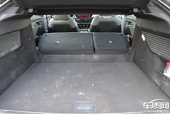 测试车型配备了电动感应后备厢和位置记忆功能,开启和关闭过程均比较轻松。后备厢内部规整度不错,两侧轮拱所占面积有限,不会对实际空间造成影响。对于后备厢日常所需的数值,我们也进行了实测,其后备厢开口宽度为110cm,开口长度为108cm,后备厢地台与内部车顶的垂直高度为72cm,后备厢进深为98cm。