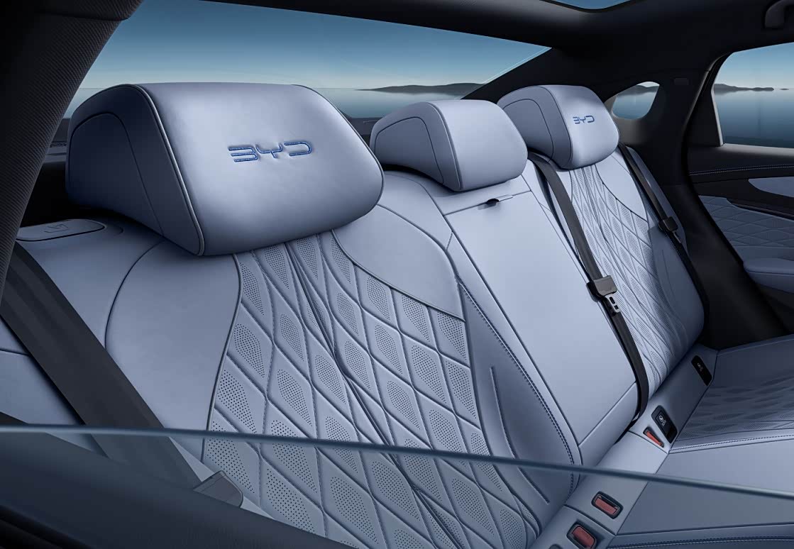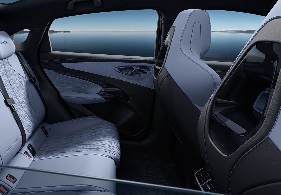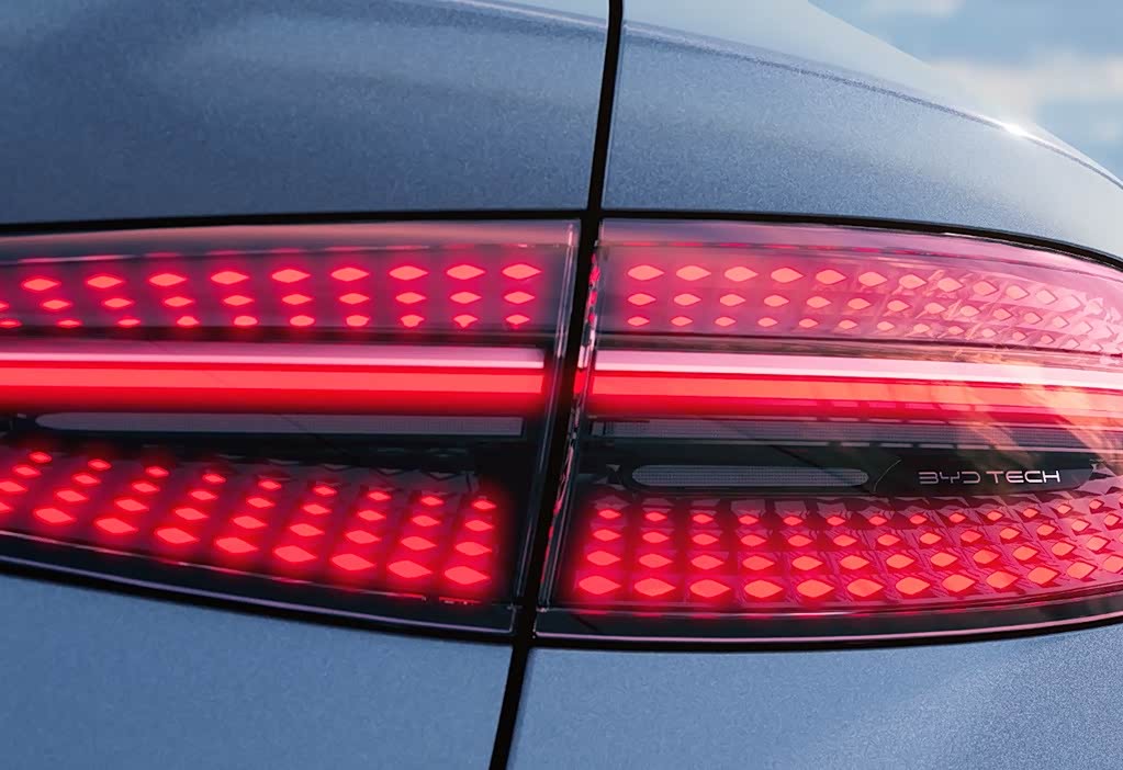 车尾则延续了贯穿式尾灯设计,除此之外还设计了两侧的出风口和熏黑的后包围,提升了整个车的运动气息。这样的设计风格比较符合海洋系列的整体定位,同时也避免了与比亚迪汉等车型形成同品牌内耗。