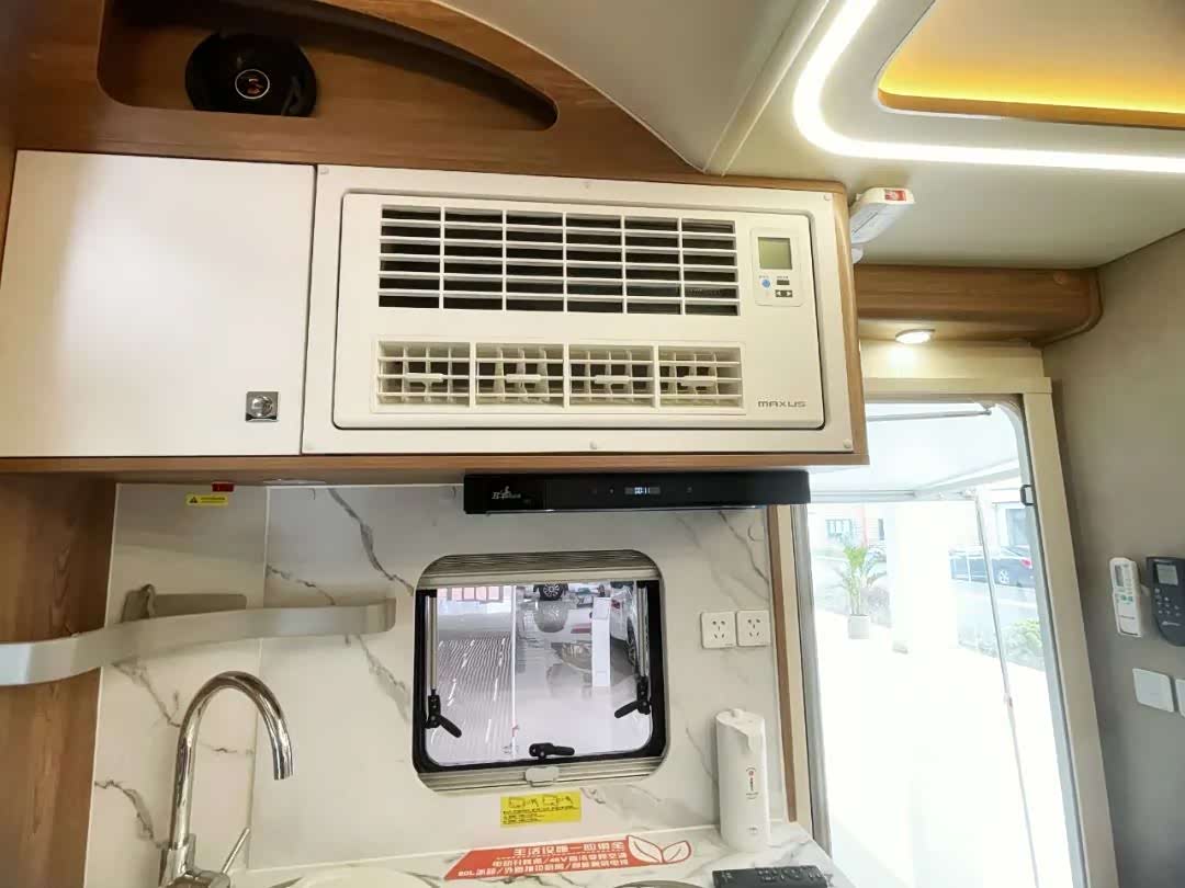 搭载壁挂式原厂房车专用48V直流变频空调(制冷),另有伟巴斯特驻车燃油加热系统(可支持暖风及热水);制热、制冷均支持APP远程控制。