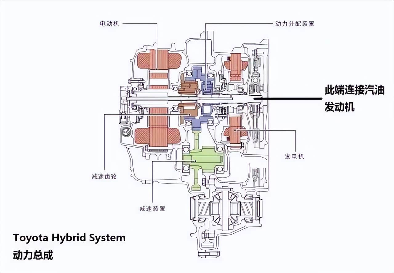 在油混领域,目前丰田可以说是最高水平,油混的工作原理很简单,发动机除了要像油车一样正常负责行驶,还要给充当发电机的角色为电池充电,所产生的电能会储存在电池中,在车辆起步以及低速行驶等工况时,车辆会依靠电力行驶,这样可以完美避开发动机等低功率区间,以起到降低油耗的目的。