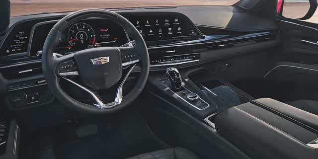 不同于欧洲高性能车常见的减少配置来减重,比如保时捷在部分车型中直接拆掉中央显示屏,美系高性能车则注重马力,配置和座椅等没有变化,凯雷德V前排的38英寸曲面OLED像素密度是 4K 电视的两倍,而标配的爱科技)AKG Studio Reference音响系统有36个喇叭,提供剧院级的听觉效果。