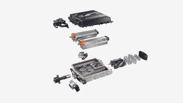 凯雷德V搭载一台全新的LT4 6.2L机械增压V8发动机, 和CT5-V黑翼车型的的机械增压V8结构相似,但使用了更大的2.65升R2650 TVS 增压器,相比废气驱动的涡轮增压,机械增压是由发动机曲轴本身来带动,需要消耗发动机动力,来产生强制进气效果,仅这款增压器就需要80马力的曲轴功率来带动,但压缩进气为发动机本身功率提升带来的增益更多。