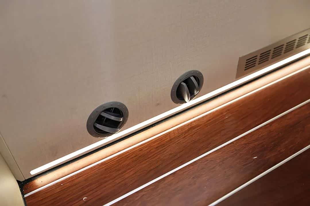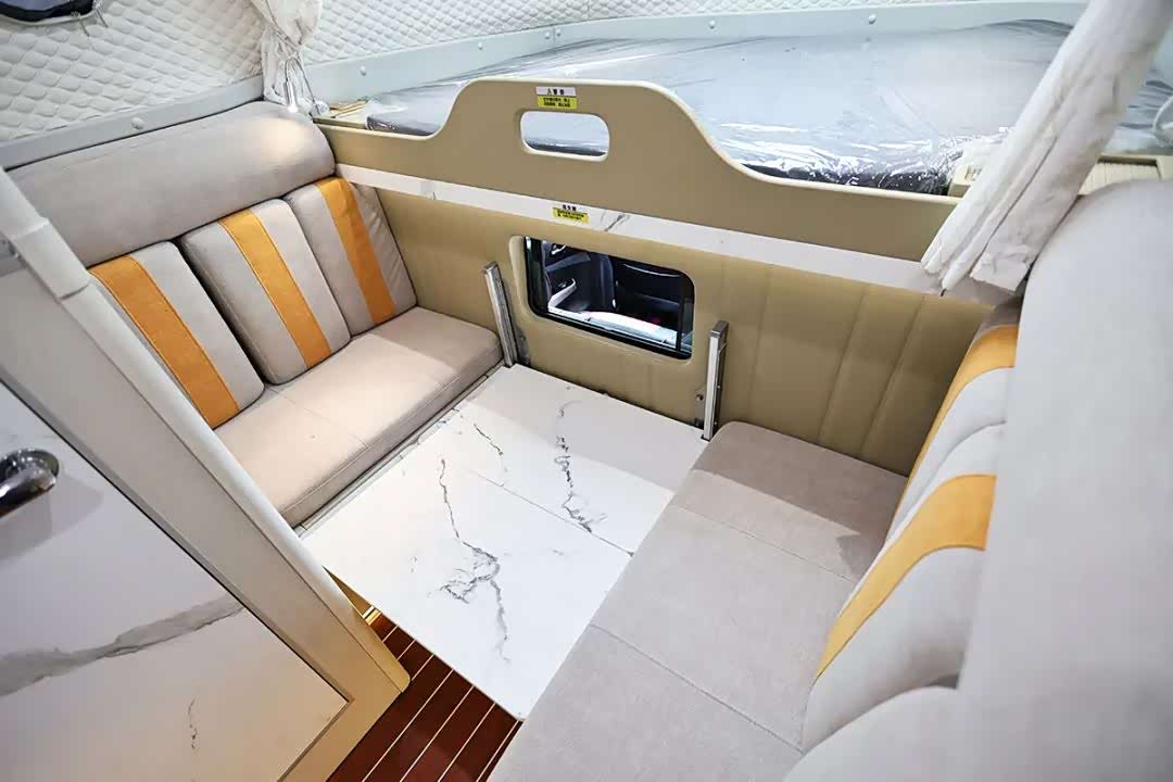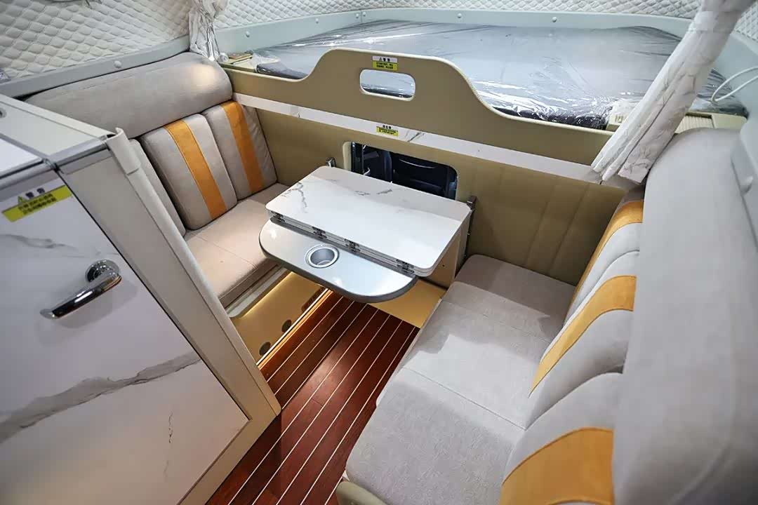 客厅位于驾驶室后方,两者之间设有逃生窗口,也可用于日常换气。