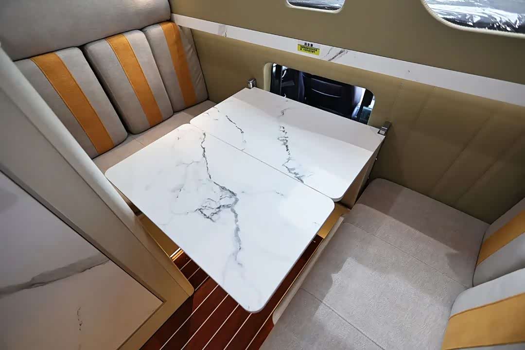 房车厢体部分采用双层全铝冲压车身,底盘及厢体为一体式硬连接。