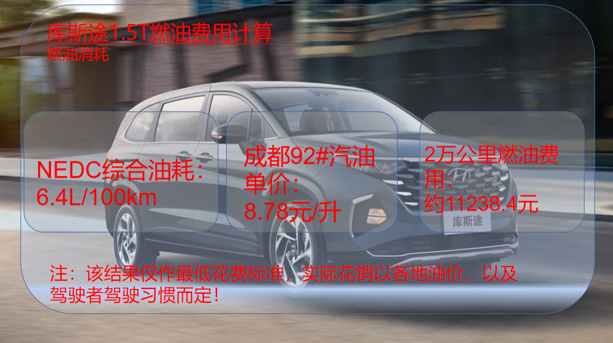 对于一辆售价16.98-21.88万元的七座MPV而言,每个月1600元以上的养车成本并不便宜。并且,这还只是按最低标准计算,实际花销可能更高。而从产品力方面来看,不可否认库斯途的实用性较高,但后扭力梁式非独立悬架的配备,使它的行驶质感稍微欠佳,所以从舒适性角度出发,个人认为库斯途的推荐指数仅3颗星(满分5颗星)。