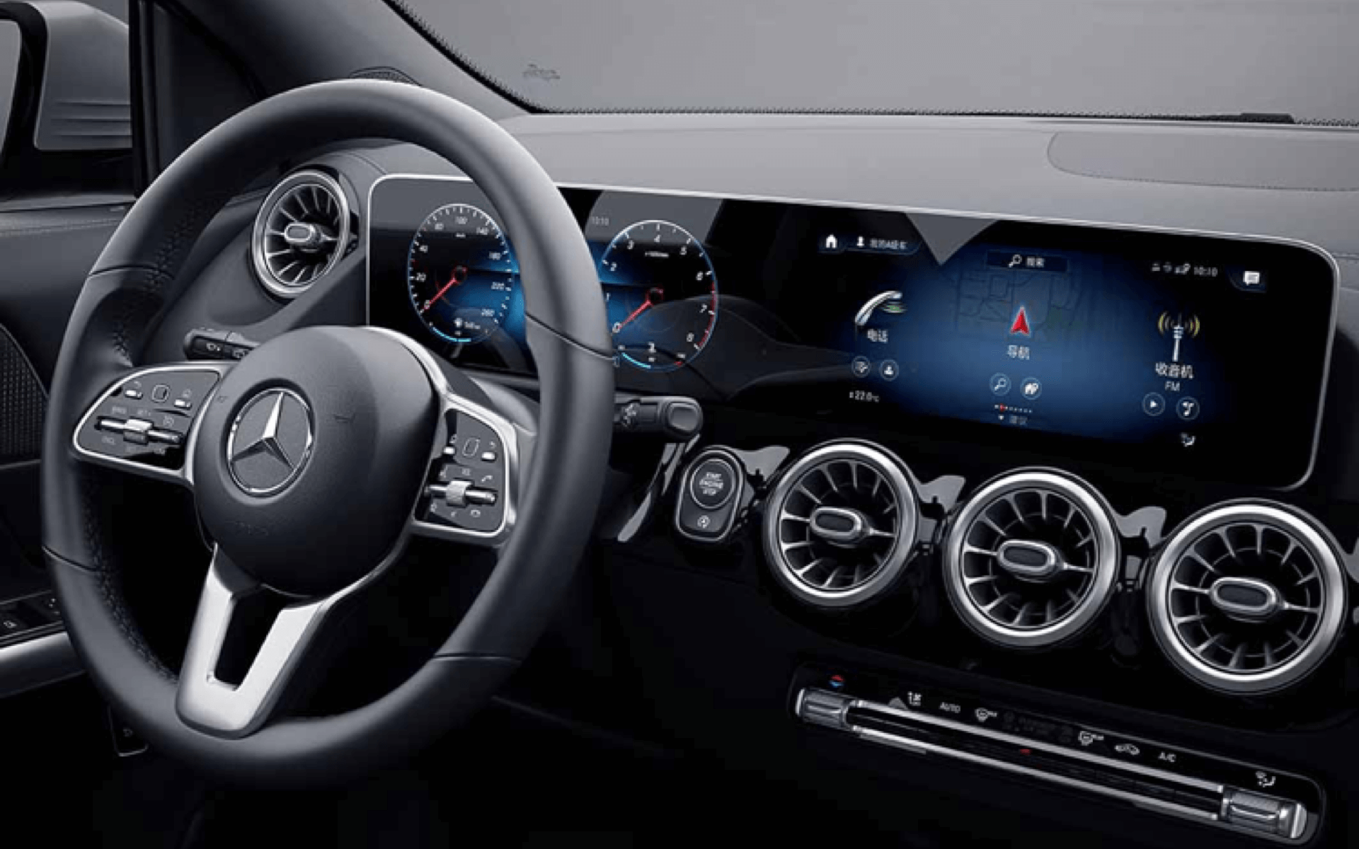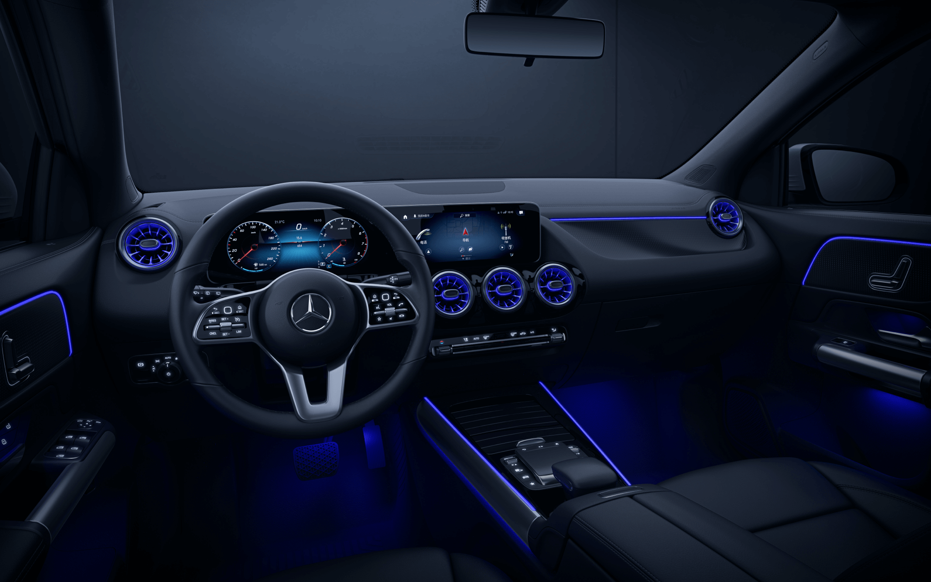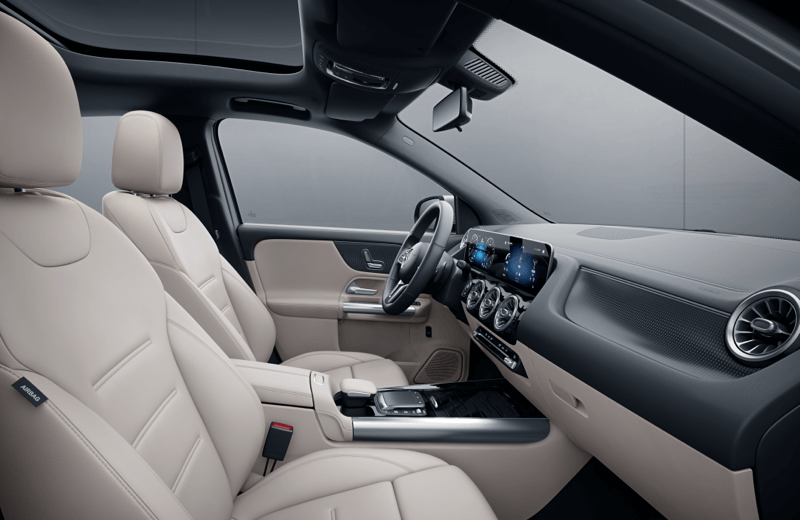 内饰方面,2022款奔驰GLA也基本延续了老款的设计布局,10.25英寸的液晶仪表和10.25英寸的中控屏采用一体式设计,而双联屏也是时下较为流行的设计手法,给车内带来科技氛围。除此之外,包括空调出风口、方向盘、门板等部分也加入了金属镀铬装饰,增添精致效果。