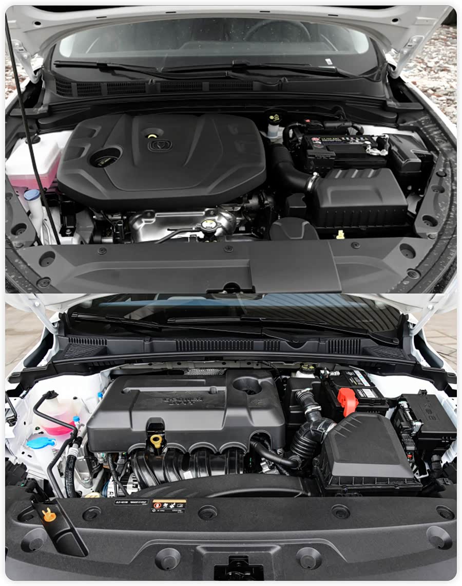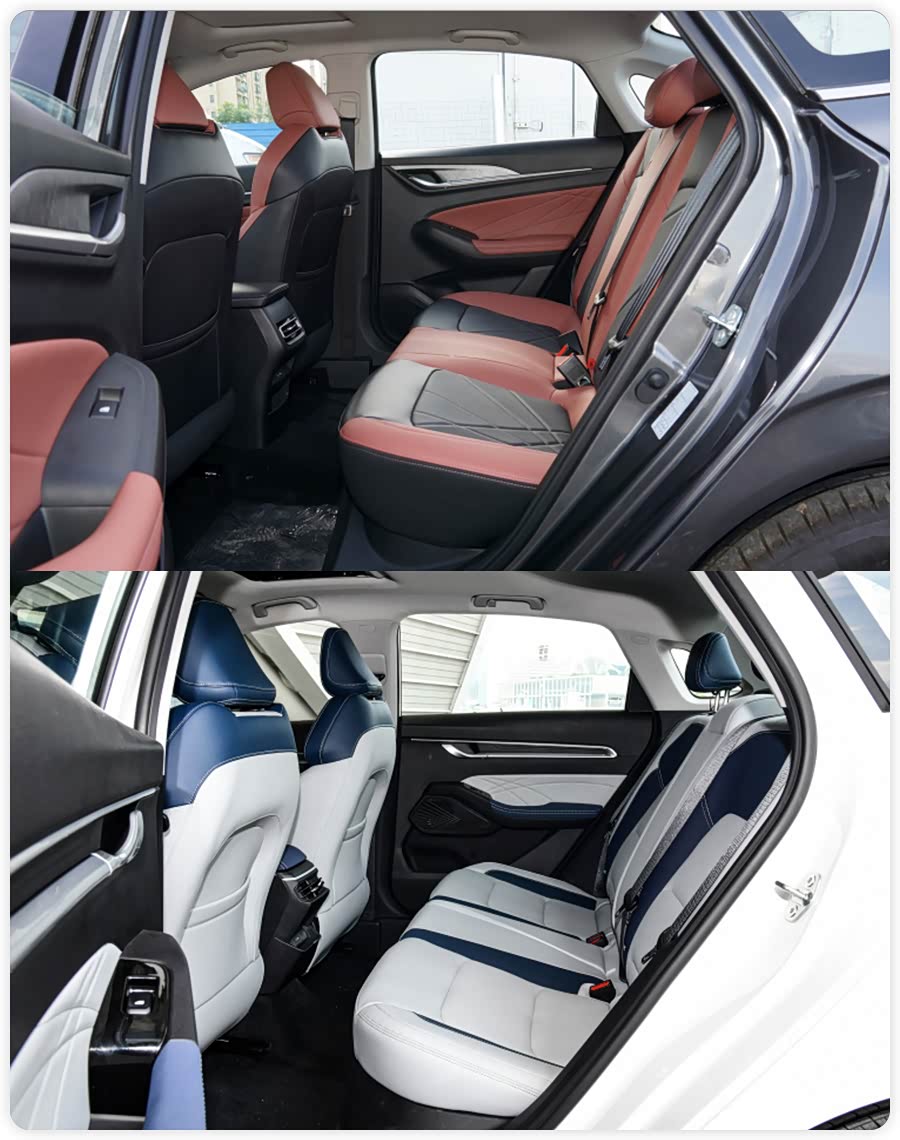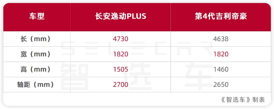 从车身尺寸上看,长安逸动PLUS是明显优于第4代吉利帝豪的。很巧的是,两车的车身宽度都为1820mm,但是轴距方面逸动PLUS长了50mm,从图片中也不难看出,逸动PLUS的后排腿部空间更充裕。不过,从小智实际的体验来看,逸动PLUS虽然后排空间更充裕,但是坐垫承托性不如吉利帝豪,长度偏短,这也是长安车型一贯的小毛病。