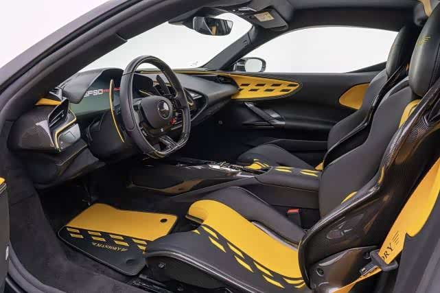 此款MANSORY迈莎锐F9XX,内饰配色采用了明亮的黄色系,不仅呈现在座椅、脚垫、安全带上;也充斥在了车厢内壁、中控台等部位。