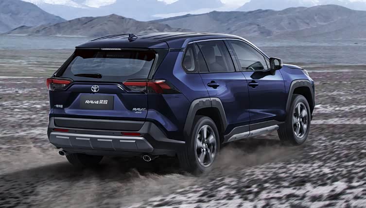 RAV4荣放尾部造型较为敦实,整体采用上窄下宽的设计,两侧棱角分明的尾灯组中间通过饰板进行连接,进一步延展了车尾的横向视觉效果。同时,该车于后包围处配备有宽大的银色防擦板装饰,排气依旧采用双边共双出布局。