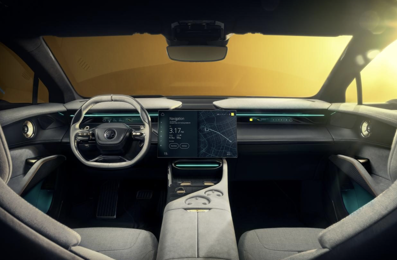 纯电时代,智能化也必不可少。智能座舱方面,Eletre搭载了双第三代骁龙座舱平台(高通骁龙8155芯片),与世界顶级的3D渲染技术组成“一虚一实”超级大脑,协同支持车内5块屏幕、3D导航等多个场景的流畅应用和高速信息传输功能,为驾乘者创造高品质的智能化体验。