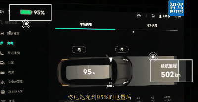 将电池充到95%的电量后,仪表显示续航里程为502km,此时车辆的总里程表数据为3982km。