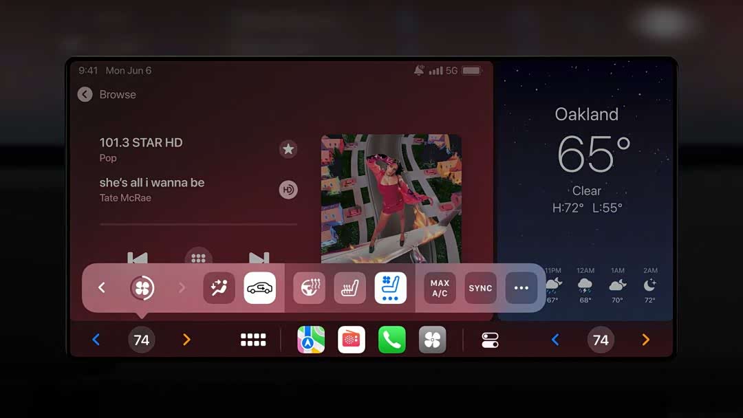 六年后的今天,CarPlay更进一步,从上一代简单的手机投射控制信息娱乐屏,向适应不同尺寸车载屏幕、控制空调温度、保持UI一致性等方向拓展。