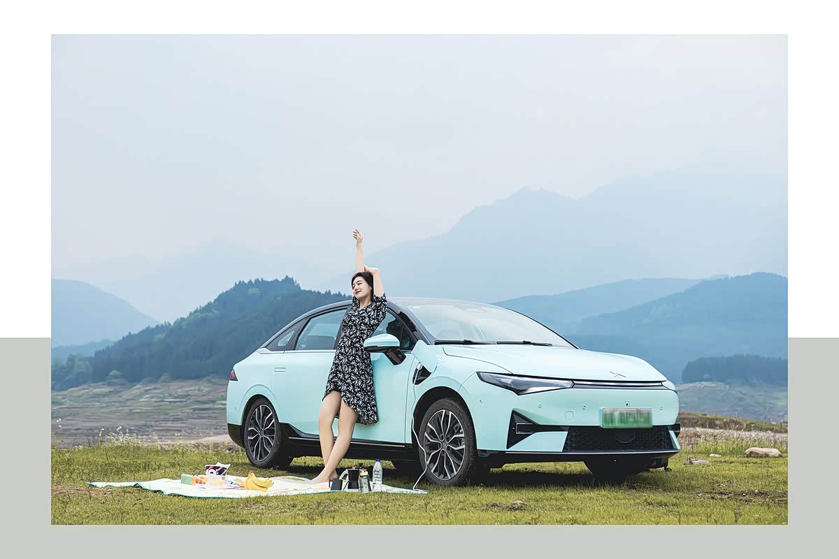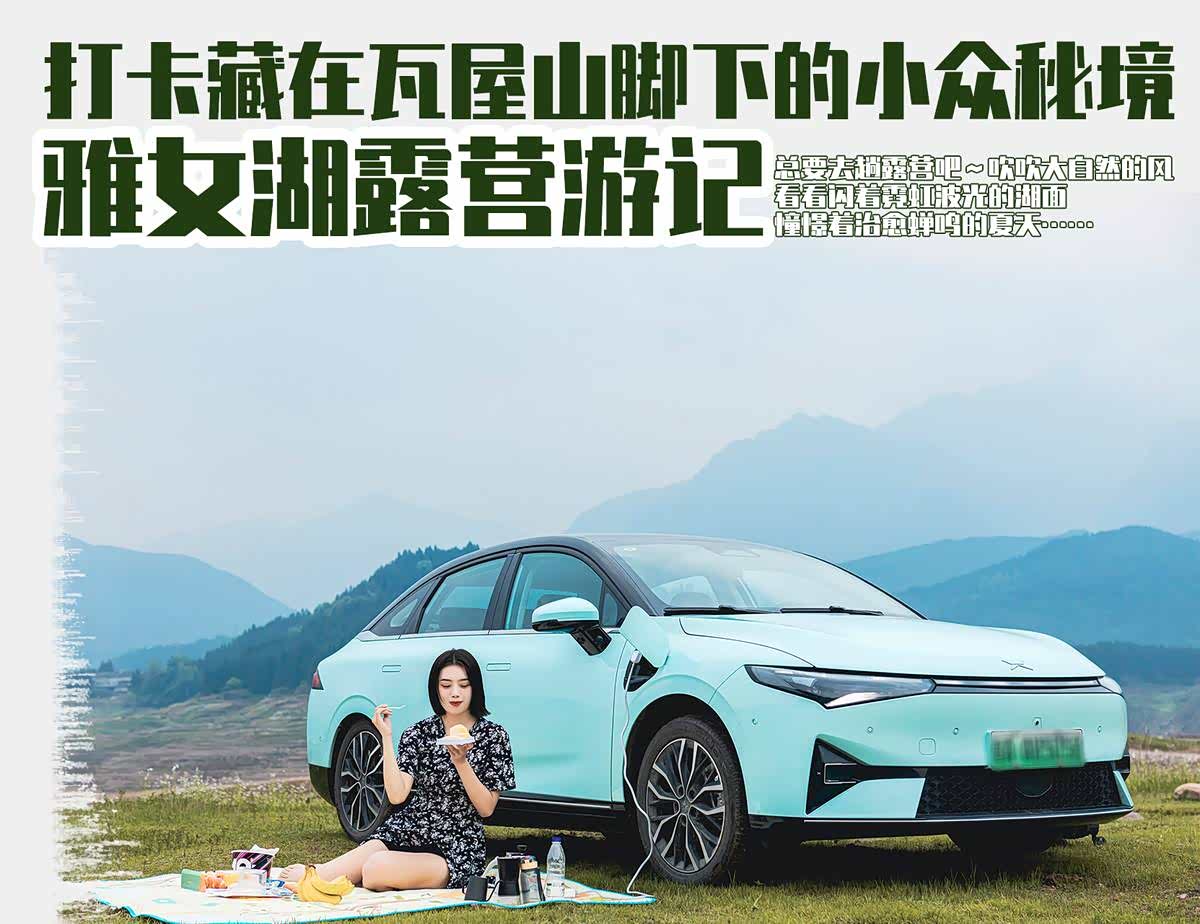 将小鹏P5停在湖边,铺一张餐布,席地而坐,午后阳光有些炫目,没有高楼的遮挡,大自然的景象一目了然。