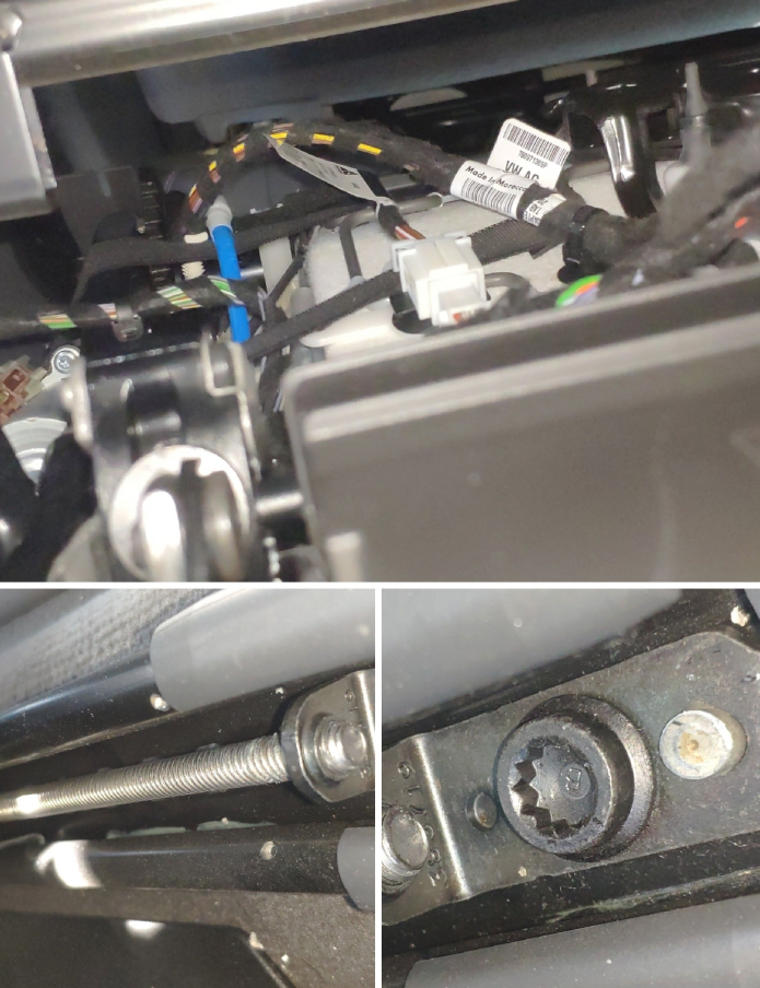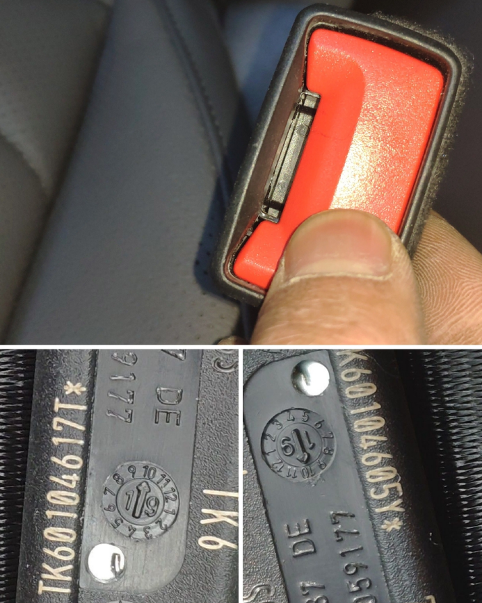 接着检查到安全带固定螺丝没有拆卸拧动痕迹,安全带全部抽出并未发现受潮生霉的情况,安全带生产日期也都符合车辆出厂日期。