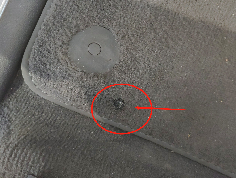 不过主驾地毯上有一个烟头烫印,现在开车抽烟是要面临扣分的哦,这种情况不提倡。