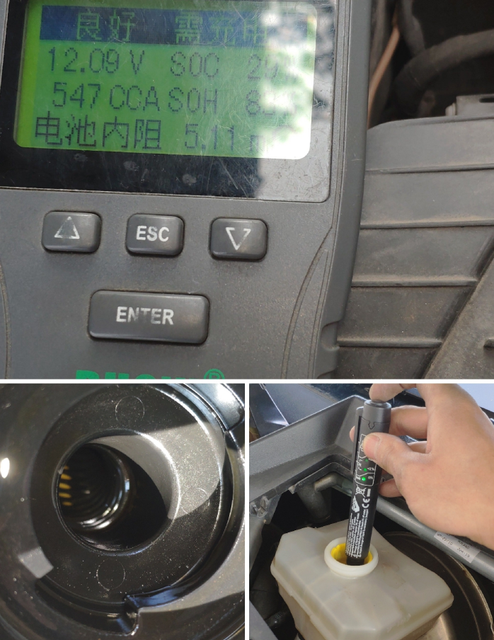 接着测量全车油水,可以看到机油能够正常使用,但是还是建议买回去过后再做一次保养,毕竟也是50多万的大家伙,把保养周期把握在自己手里最好。其它的油液经过检测都是在正常范围内的,没有任何问题。接下来看看内饰咋样。