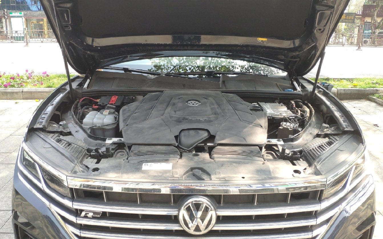 这款大众途锐搭载的是一台3.0T发动机,最大马力340,最大扭矩450N·m,匹配8AT变速箱。这个动力水平和宝马X5的40i是一个级别的,开起来绝对有劲。目前机舱看上去没有打理过,灰尘比较多,还保持者原汁原味,方便咱们检测原始车况,马上就来看看细节。