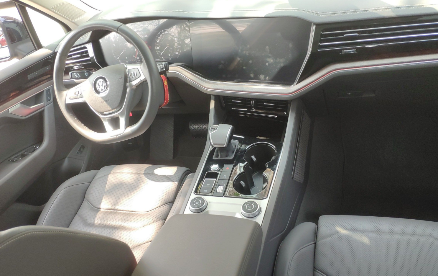 这款大众途锐用上了大众的最新设计语言,比以前的大众在质感和科技感上都有不错的提升。不过这个内饰看上去和现款的奥迪A6L有点相似,就是少了一个屏幕,只有两联屏,个人认为奥迪的三联屏看上去更好一点。目前车内几乎没有什么磨损,符合表显的3万多公里。再来看看细节。