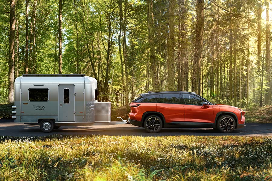 不仅配备了投影配置,蔚来ES7还是国内首批通过法规认证,可以合法拖挂房车、挂车上路的乘用车。它的尾部配备了隐藏式电动挂钩,并配备了专属的拖挂模式。最大总质量达到2吨,并支持对被拖挂设备的供电。