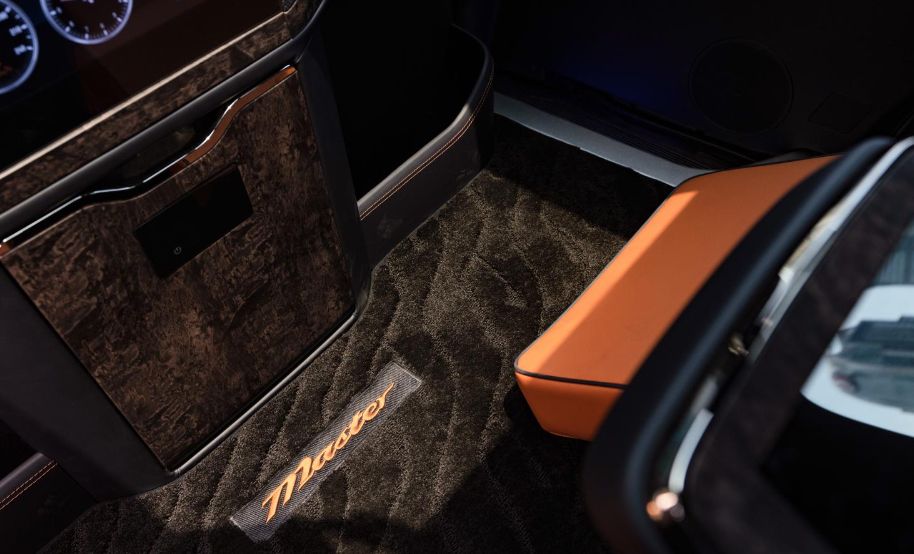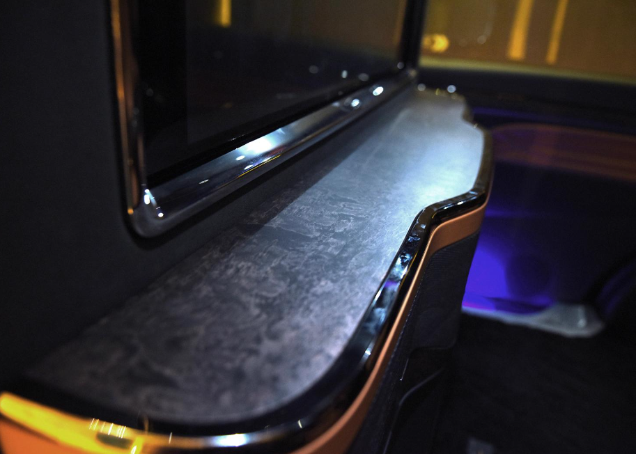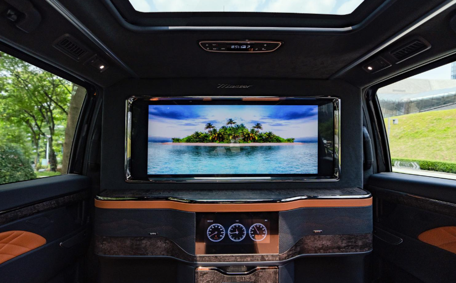 要说升级最明显的,还得看这台车的后排,从这台车发布的信息来看,该车在方向盘、吧台、多功能扶手液晶控制屏等细节处运用奢华玛瑙木纹装饰件,新增加的高保真定制KTV系统,以34寸电视作为KTV显示屏幕,配备专业唱将级麦克风,可以满足大家唱歌的需求,整车的乘坐体验还是很不错的。