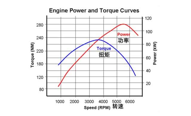 但是峰值扭矩从285Nm降低到了275Nm,那么如何解释峰值扭矩反而下降的问题?首先来看一款车的功率和扭矩曲线图,可以清楚地看到,扭矩在中间转速时最大,而功率在转速带的顶部最大。这是因为最大扭矩发生在发动机的最大容积效率下。容积效率代表发动机吸入空气的效率,简单来说就是呼吸效率。