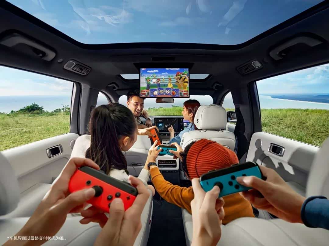并且,除了中控屏、副驾驶娱乐屏之外,理想L9还新增了一块安装在车顶上的娱乐屏,它的尺寸达到了15.7英寸,并且具有3K高清分辨率,除了日常看音乐,看电影之外,这三块屏均可以通过Type-C连接Switch等游戏机,确实有种“终极奶爸车”的感觉。