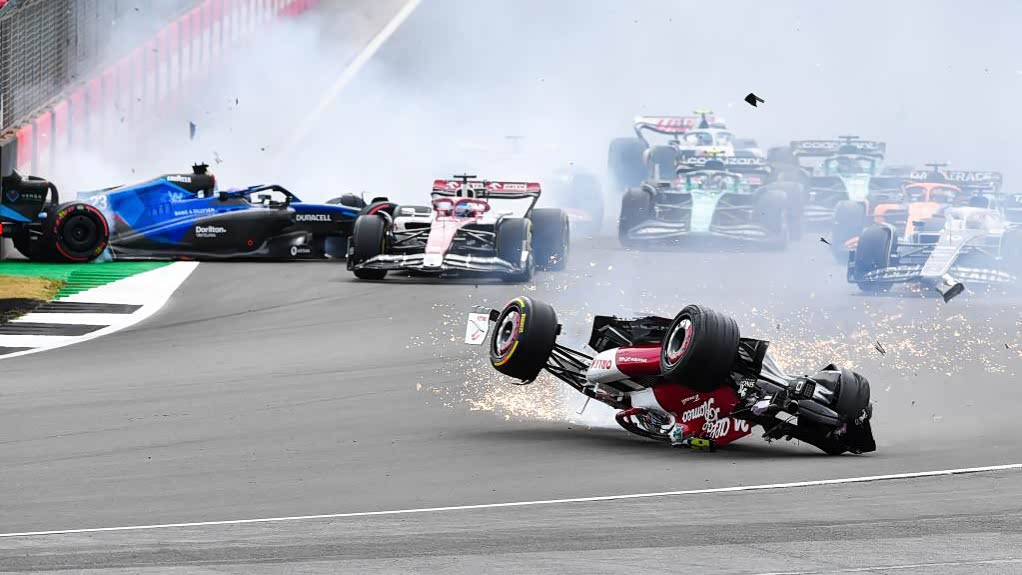 北京时间7月3日22时许,我国首位F1车手在英国大奖赛的起步发车阶段,被强行“加塞”的拉塞尔撞了出去,周冠宇的赛车瞬间翻车,并经过数次翻滚后往看台方向飞去…