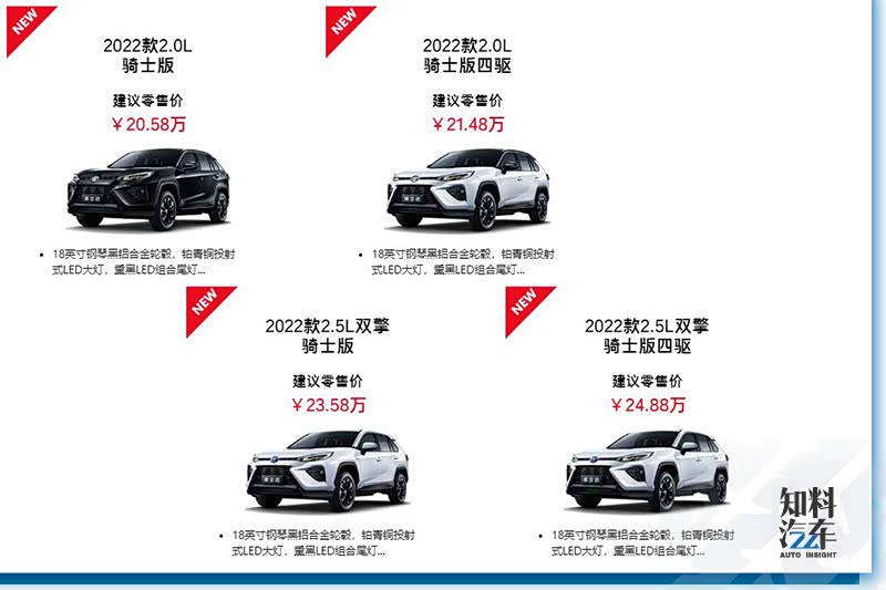 威兰达 2022款 双擎 2.5L E-CVT两驱骑士版 | 威兰达 2022款 双擎 2.5L E-CVT四驱骑士版 |