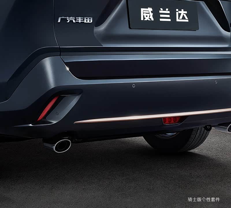 骑士版个性套件走炫黑路线,外观部分包括独特的铂青铜投射式LED大灯和回旋镖式LED日间行车灯、黑色钢琴烤漆轮眉、18英寸钢琴黑铝合金轮毂、熏黑LED组合尾灯、黑色电镀组合尾灯装饰、车尾钢琴烤漆环绕式包围和铂青铜环绕式装饰。内饰部分,Wildlander威兰达骑士版提供了黑色内饰套件,也加入了铂青铜饰条,内外氛围得到统一。