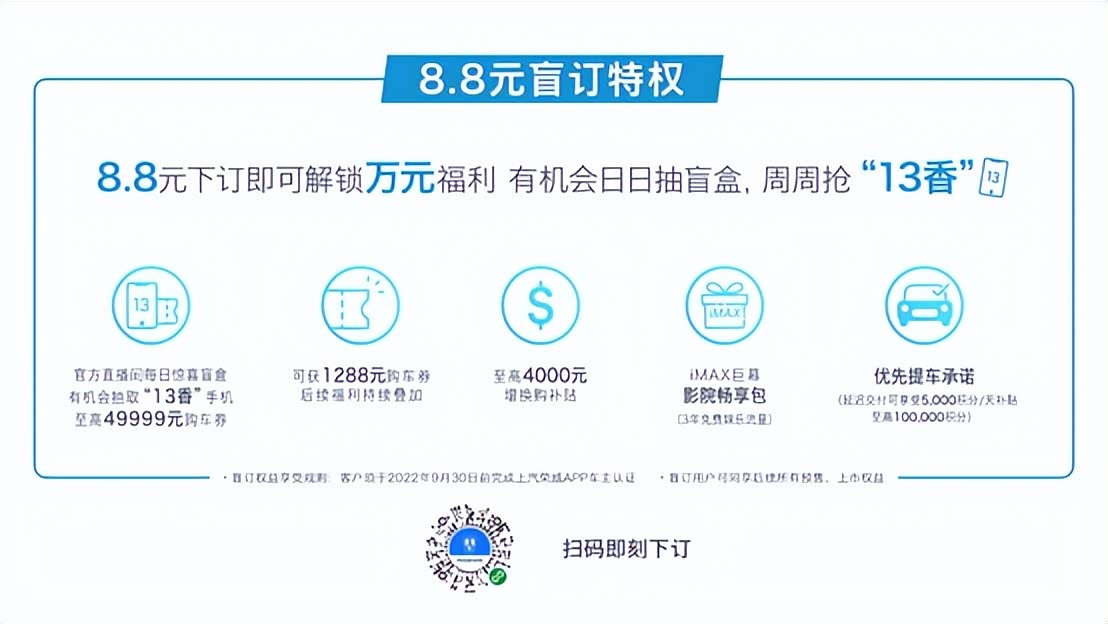 自6月份全新第三代荣威RX5燃油车和混合动力车开启盲订后,我就盯上了这款车。官方宣布——宣布8.8元订单可解锁,官方直播间每日惊喜盲盒(有机会抽“十三香”手机,最高49999元车券)、1288元车券(后续福利继续叠加)、最高4000元额外购机补贴、iMAX巨幕影院享受套餐(3年免费娱乐流量)、优先接车承诺和其他五项喜爱的粉丝福利。丰厚的福利足可见其诚意,但其实我个人最看中的是其中优先提车的承诺,毕竟到手才是真的香!而且现在国家福利正在进行中,正是入手好时机。