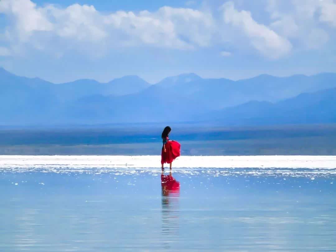 柴达木盆地有名的天然结晶盐湖,被誉为天空之境,感受令人心醉的纯净。盐湖碧空如洗,水平如镜,像天堂一样美丽、洁净。湖中有优美的倒影,所以一定要穿上鲜艳的衣服来拍照。
