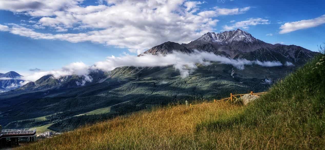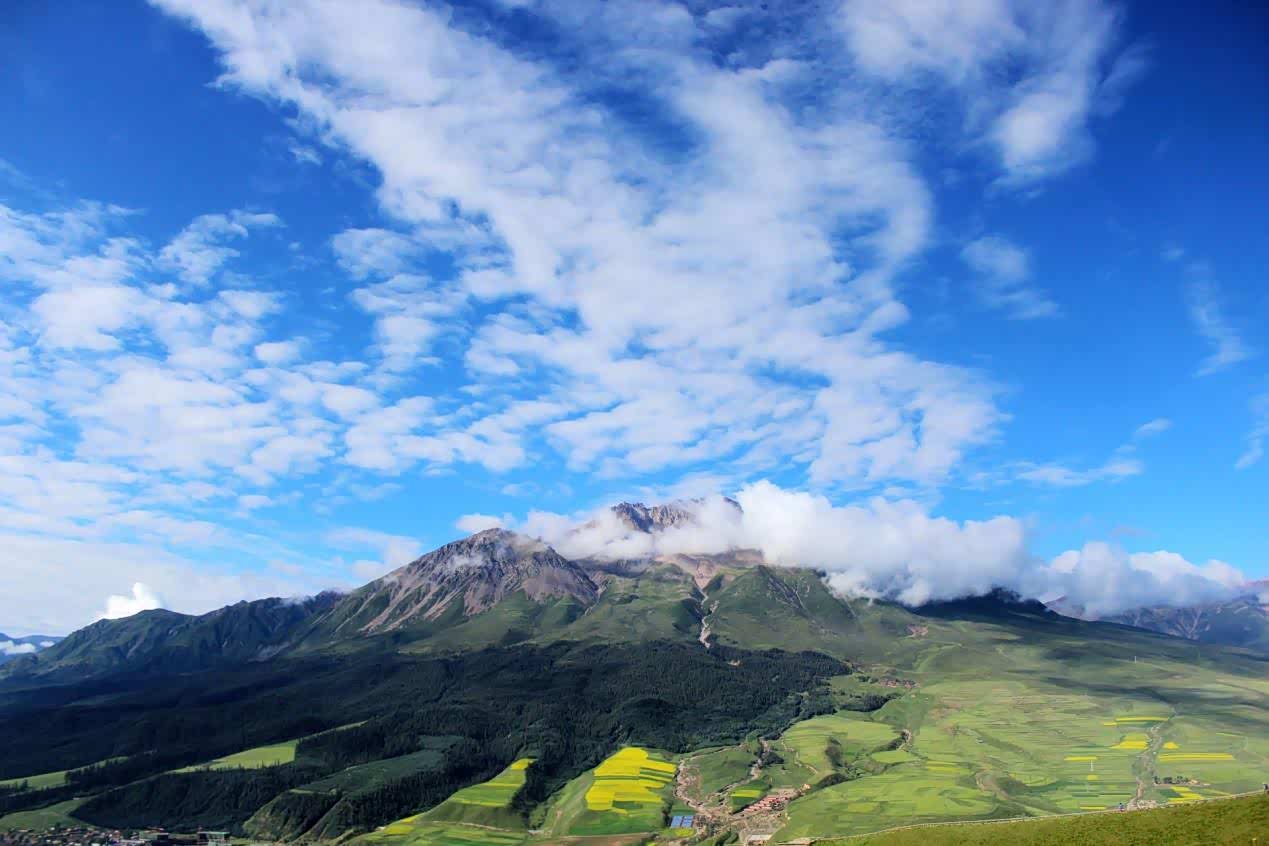 位于祁连县八宝镇,站在卓尔山顶,山对面是一山尽览四季景色的牛心山,远处是连绵起伏的祁连山,山脚下的八宝河像一条白色哈达环绕在县城周边,人称天境祁连。