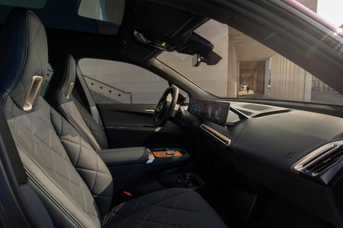 其中在宝马最新旗舰电动SUV,BMW iX车型中,内饰设计便使用了旧渔网或塑料瓶等天然和可回收材料。例如,iX的脚垫来源于从海洋深度打捞的渔网废料,而回收塑料则用于门板、座椅和地板镶板的表面。其他内饰织物面料也均由大量再生材料制作,真皮采用橄榄叶萃取物处理,而非传统的鞣制剂。